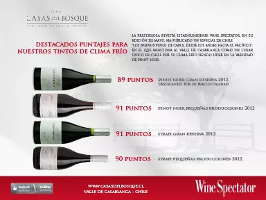 "Chile's new wines, from the Andes to the Pacific", in which it mentions the Casablanca Valley as a unique place in Chile for its cool climate being a leader in the Pinot Noir variety.