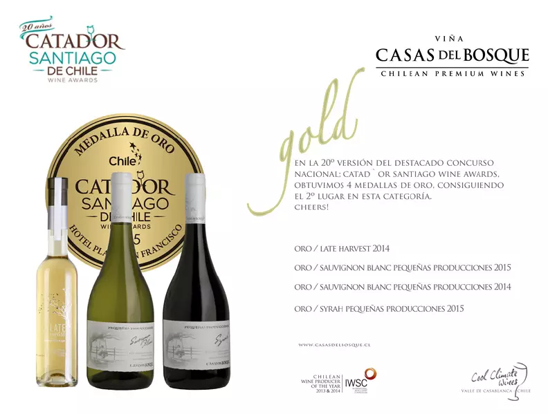 In the 20th version of the outstanding national competition: Catad'or Santiago Wine Awards, we won 4 gold medals, obtaining the 2nd place in this category.