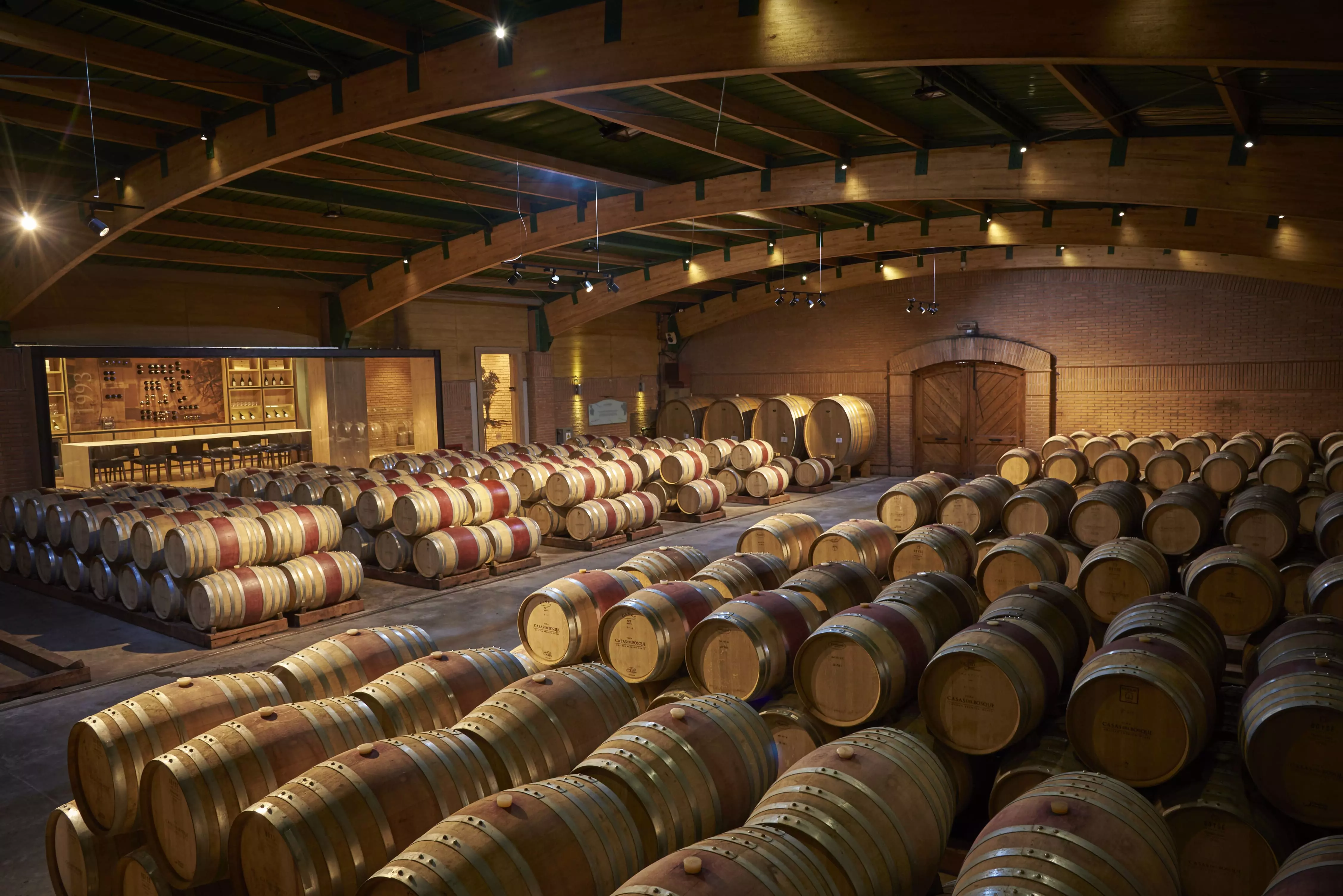 The modern winery is located in the heart of our vineyards in the Casablanca Valley. It has an area of 10,000 m2. Its current capacity is approximately 2,189,440 liters in stainless steel tanks and almost 1,000 barrels. In addition to 17,500 liters in foudre of German and Slavonian wood. Also since 2022 we started using concrete vats, which have a capacity of 26,000 liters (8,000 liters in ovoid and 18,000 liters in truncated cone-shaped). We have the latest technology and a modern temperature control system to carry out each stage of the winemaking process of our wines in the same place and under the watchful eye of our winemaking team.