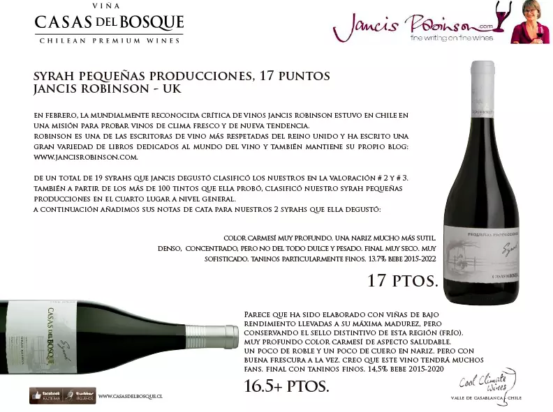 una misión para probar vinos de clima fresco y de nueva tendencia. Robinson es una de las escritoras de vino más respetadas del Reino Unido y ha escrito una gran variedad de libros dedicados al mundo del vino y también mantiene su propio blog: www.jancisrobinson.com.