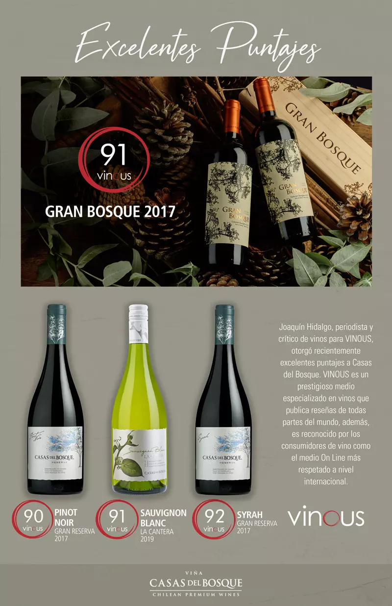 Joaquín Hidalgo, crítico para VINOUS, otorgó excelentes puntajes a Casas del Bosque