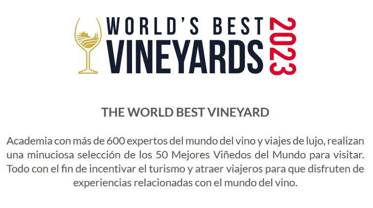 Hoy decimos con orgullo que somos referente en enoturismo sustentable de Chile y del mundo. Nuestra viña fue nominada como uno de los 50 mejores viñedos para visitar en el mundo, ocupando el lugar número 37 en los World’s Best Vineyards 2023, premiación que se llevó acabo en la Bodega Beronia en La Rioja, España.